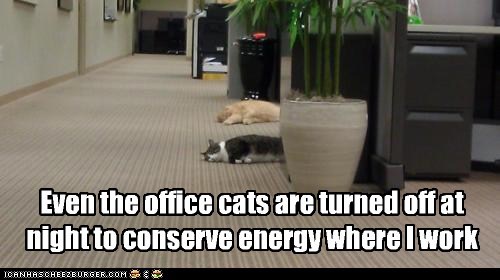 Even the office cats are turned off at night to conserve energy where I work