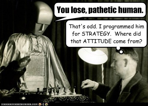 You lose, pathetic human. That's odd. I programmed him for STRATEGY. Where did that ATTITUDE come from?