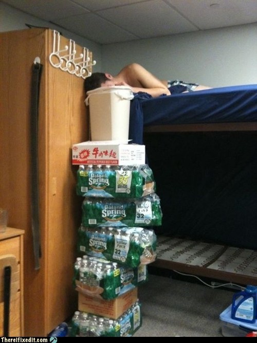 Man, he must be messed up from drinking all that bottled water. College kids these days... ~NSHA
