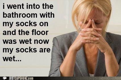 i went to the bathroom with my socks on and the floor was wet now my socks are wet...