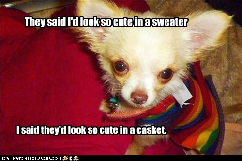 They said I'd look so cute in a sweater I said they'd look so cute in a casket.