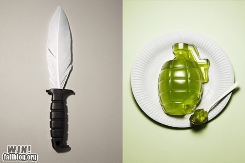 UK Artist Kyle Bean created these seemingly-deadly items using harmless household materials. Check for more in the gallery below, and more of his cool work on his web site!