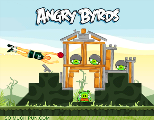Watching the pigs succumb to his Baller skills is pretty hiLarryous, though. Almost as hilarious as the unnecessary misspelling of Larry Bird's last name in this pun. - Matty Malaprop