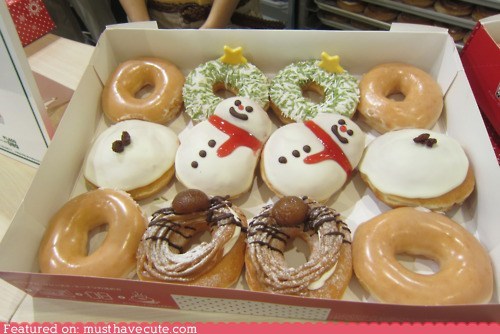 In Japan they don't mess around with their sweets. Even Krispy Kreme gets in on the holiday action. I wonder if the snowmen are cream filled.