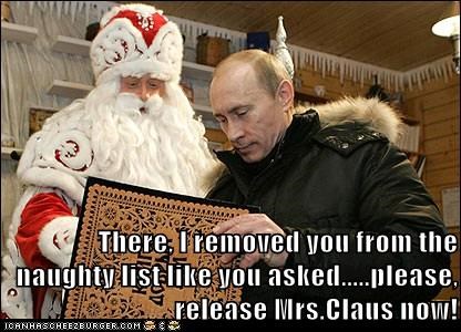 There, I removed you from the naughty list like you asked.....please, release Mrs.Claus now! (