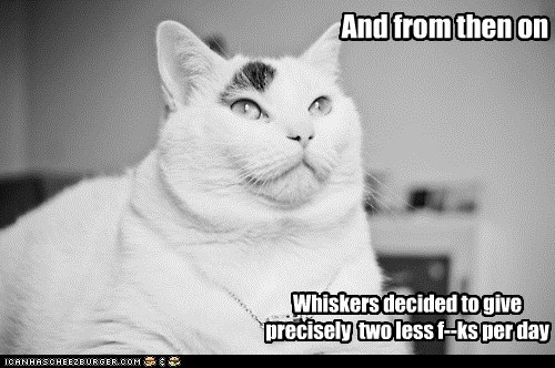 And from then on Whiskers decided to give precisely two less f--ks per day