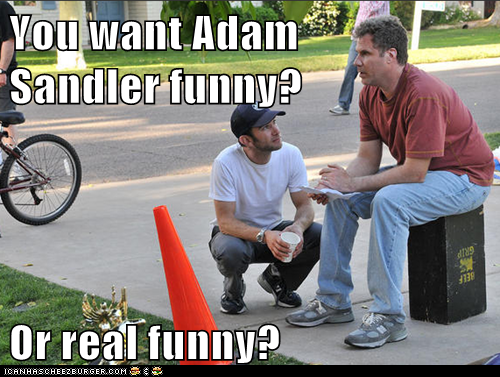 You want Adam Sandler funny? Or real funny? -Will Ferrell