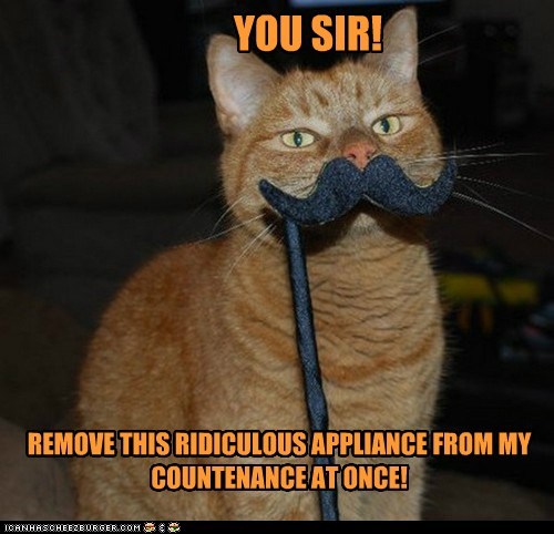 YOU SIR! REMOVE THIS RIDICULOUS APPLIANCE FROM MY COUNTENANCE AT ONCE!