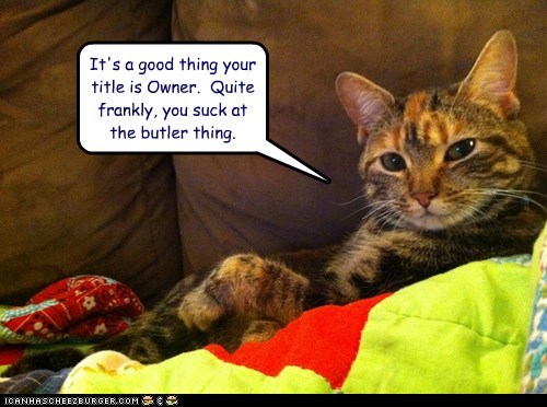 It's a good thing your title is Owner. Quite frankly, you suck at the butler thing.