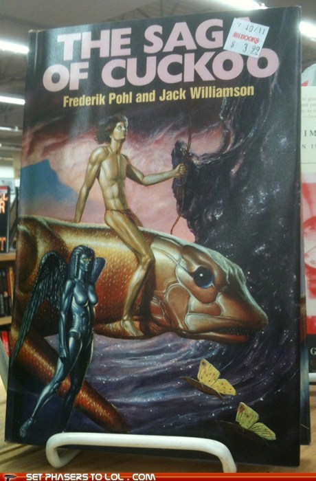 The sticker placement gives the cover art an uncomfortable new meaning. Of course any meaning at all is an improvement.