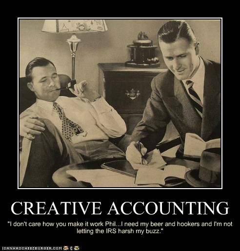 CREATIVE ACCOUNTING I don't care how you make it work Phil... I need my beer and h**kers and I'm not letting the IRS harsh my buzz."