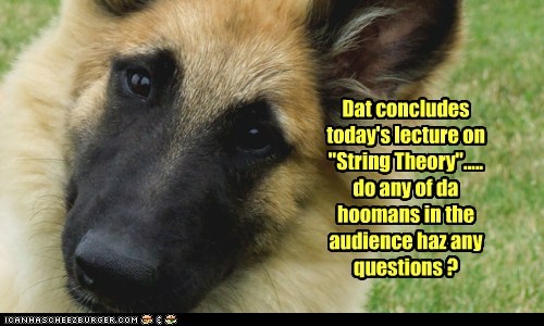 Dat concludes today's lecture on "String Theory".....do any of da hoomans in the audience haz any questions ?