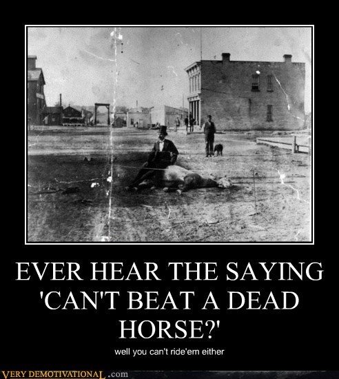 EVER HEAR THE SAYING 'CAN'T BEAT A DEAD HORSE?'