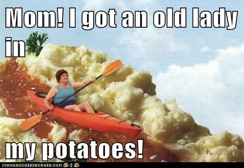 Mom! I got an old lady in my potatoes!
