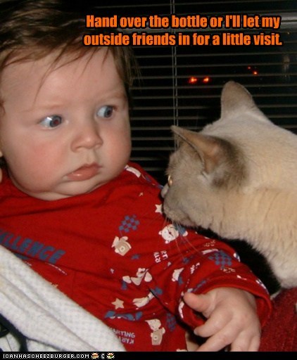 Hand over the bottle or I'll let my outside friends in for a little visit.
