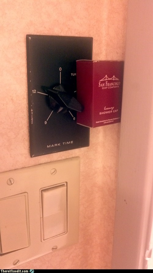 Finally found a good use for the free shower cap! Now I can take a shower longer than 12 minutes and not be left in the dark.