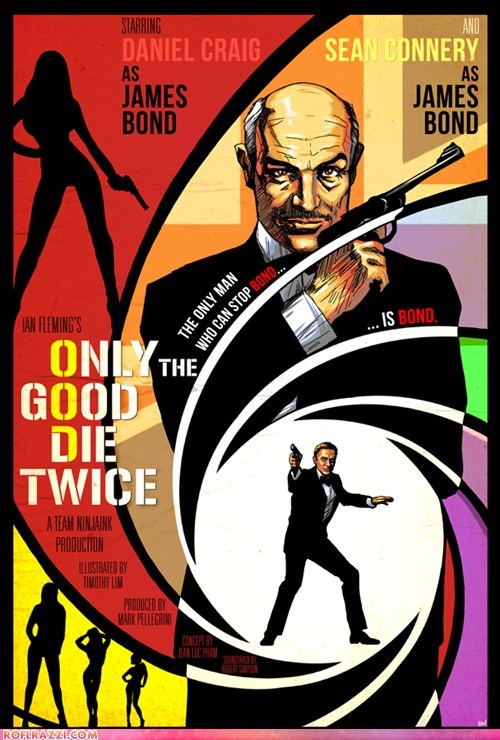Deviant Art memeber ninjaink explains his James Bond concept poster: ""Only the Good Die Twice" is a spy story set within the fictional James Bond universe. Through the prologue, it is revealed that the name "James Bond" is the codename for agents with 007 status and that the original James Bond from the Cold War (played by Sean Connery in a returning role) has gone rogue and is now the head of SPECTRE. The current Bond