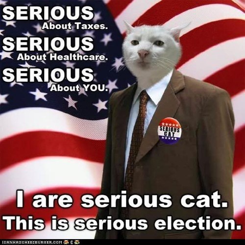SERIOUS About Taxes. SERIOUS About Healthcare. SERIOUS About YOU. I are serious cat. This is serious election.