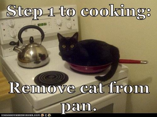 Step 1 to Cooking: Remove cat from pan.
