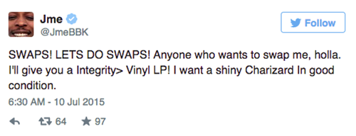 Dude's music isn't bad, but I'm not sure it's worth trading a shiny Charizard for. I don't know if any album is worth that, TBH.