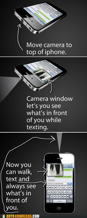 You could also use this repositioned camera to take surreptitious pictures of noteworthy derrieres walking in front of you. It adds a distinct creep factor to this idea when you think about it.