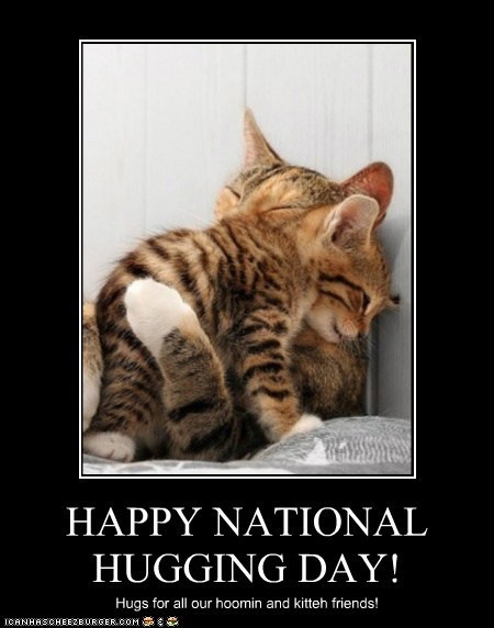 Ohai, Cheezfrends! Tomorrow is National Hugging Day, aka THE BEST HOLIDAY EVAR!!!!!1 Who doesn't love a hug? The answer is NO ONE! We've compiled a gallery of adorable and funny hugging LOLs, so you should check that out by clicking below. And you should follow that up with BIG HUGS for everyone (kittehs included) that you know and love!