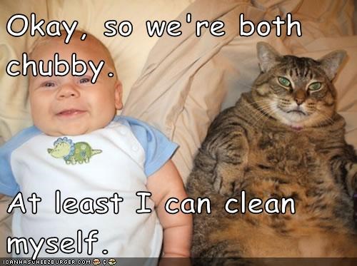 Okay, so we're both chubby. At least I can clean myself.