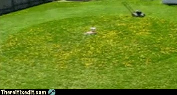 Toward the end, it gets trapped in the vortex and starts to mow itself.