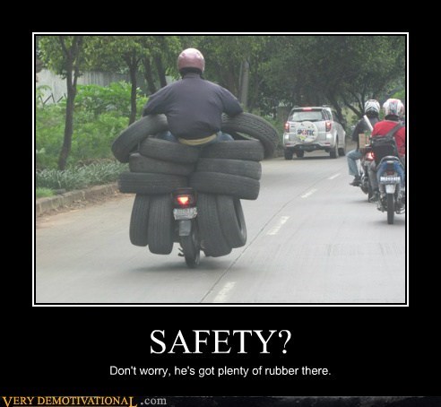 SAFETY? don't worry he's got plenty of rubber there.