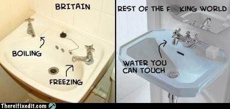 That's because British people only have two uses for water: hot water for their tea, or cold water for splashing on their face after getting tipsy at the pub. #stereotypes
