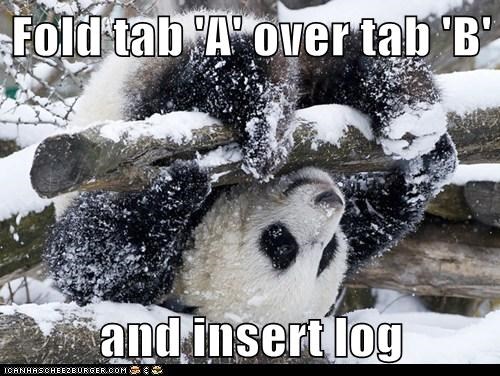 Fold tab 'A' over tab 'B' and insert log