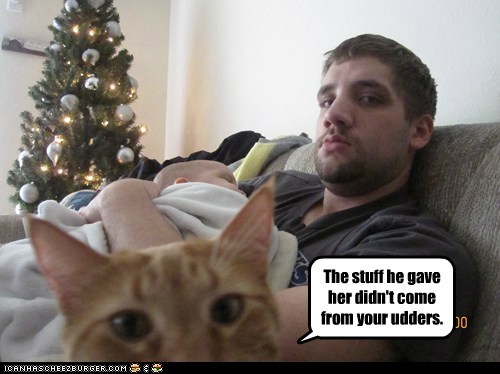The stuff he gave her didn't come from your udders.