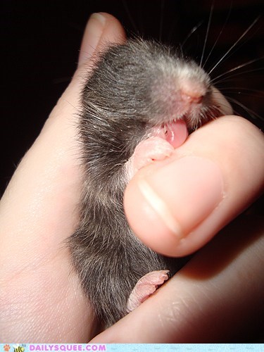 Do you know what Noa is? He's obviously a squee wee fuzzy rodent, but this angle and the giant hand obscure some telltale signs!