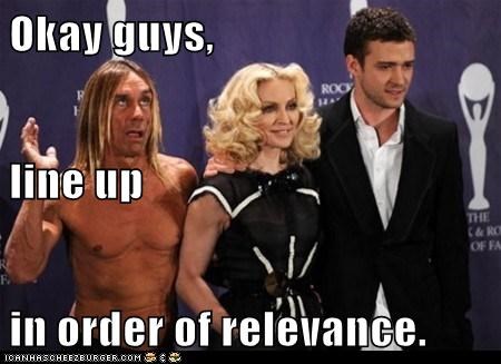 Okay guys, line up in order of relevance. -Iggy Pop, Madonna, Justin Timberlake