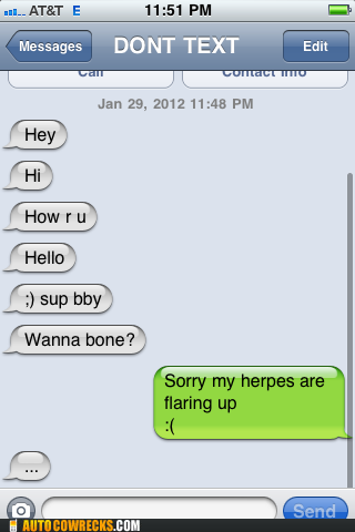 From not taking the hint to propositioning with the word "bone." If he doesn't have herpes already, I'd be surprised.