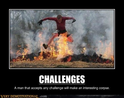 CHALLENGES a man that accepts any challenge will make an interesting corpse