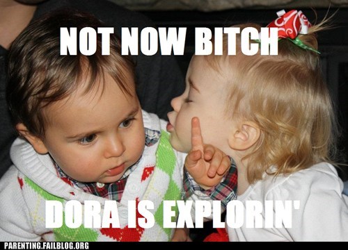 No one comes between baby and his Dora.