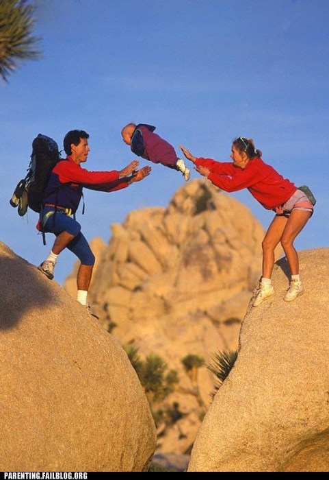 I mean, you have to get him across somehow. Other options include (but aren't limited to) baby zipline, hang glider, cannon, or all of the above.