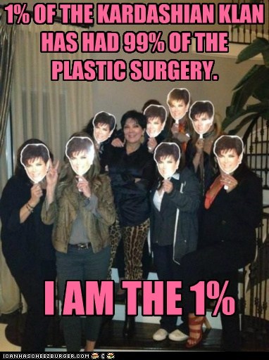 1% OF THE KARDASHIAN KLAN HAS HAD 99% OF THE PLASTIC SURGERY. I AM THE 1% -Kris Jenner