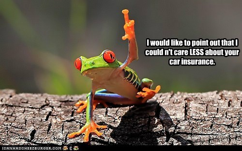 I would like to point out that I couldn't care LESS about your car insurance.