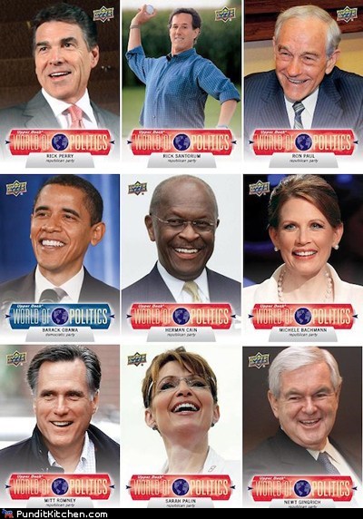 Baseball card maker Upper Deck is expanding to include politicians in its new "World of Politics" line of cards. Wait, why is Rick Santorum the only one that gets an action shot?