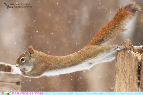 Alright, so I'm EXACTLY the length I need to be to form a de fact bridge between these two ledges, which means Jamie should be able to cross my back in order to get to that acorn cache we caught wind of earlier today no problem. I swear to Ceiling Squirrel though, if he stays too long on that side in order to eat a part of my cut of our nut-profits, I'm going to swing out from under him on his return trip!
