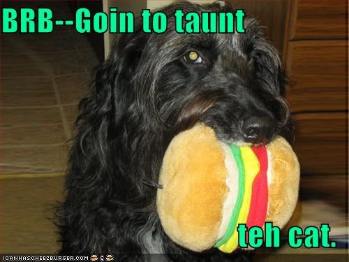 BRB--Goin to taunt teh cat.