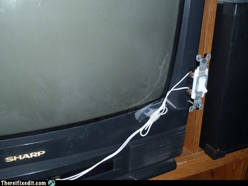 Redditor shd4807's father was having trouble with the power button. I really hope no one ever tells him about universal remotes, I would love to see what he comes up with next. ~NSHA