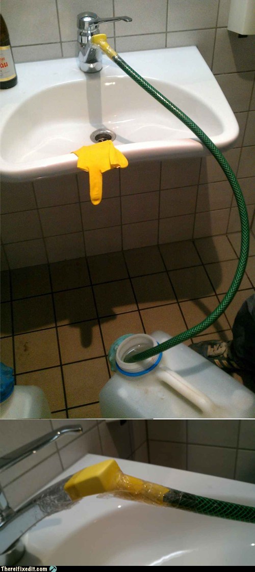 the canister did not fit under the faucet..... So we made an adapter from a wash mitt, a tube and tape.