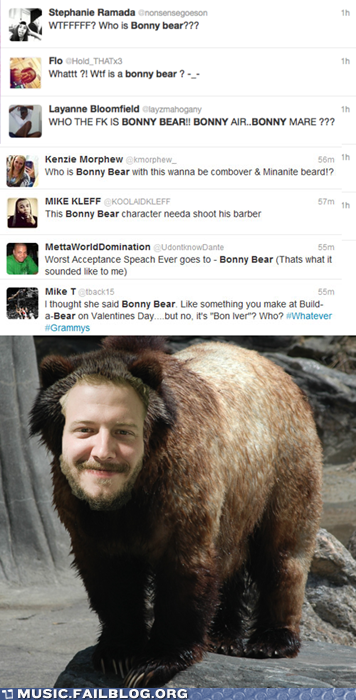 Baffled by "Bonny Bear" at the Grammys