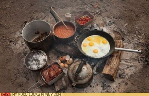 Considering all I do when I go camping is sit around and drink beer, this breakfast is some serious overkill. But you don't see me complaining.