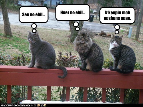 See no ebil... Heer no ebil... Iz keepin mah opshuns opan.