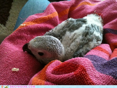 dragonfish86 says: "This is my parrot Cookie when she was about 7-8 weeks old. I practically squee whenever I see this, so I thought I should share it."