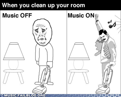 That must be the quietest vacuum cleaner ever, if he's able to hear the music above its RAWRAWRAWR noises.
